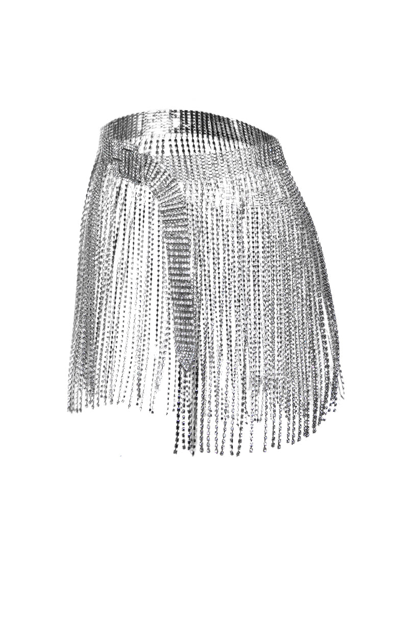 SHAKE A TAIL FEATHER RHINESTONE FRINGE SKIRT BELT
