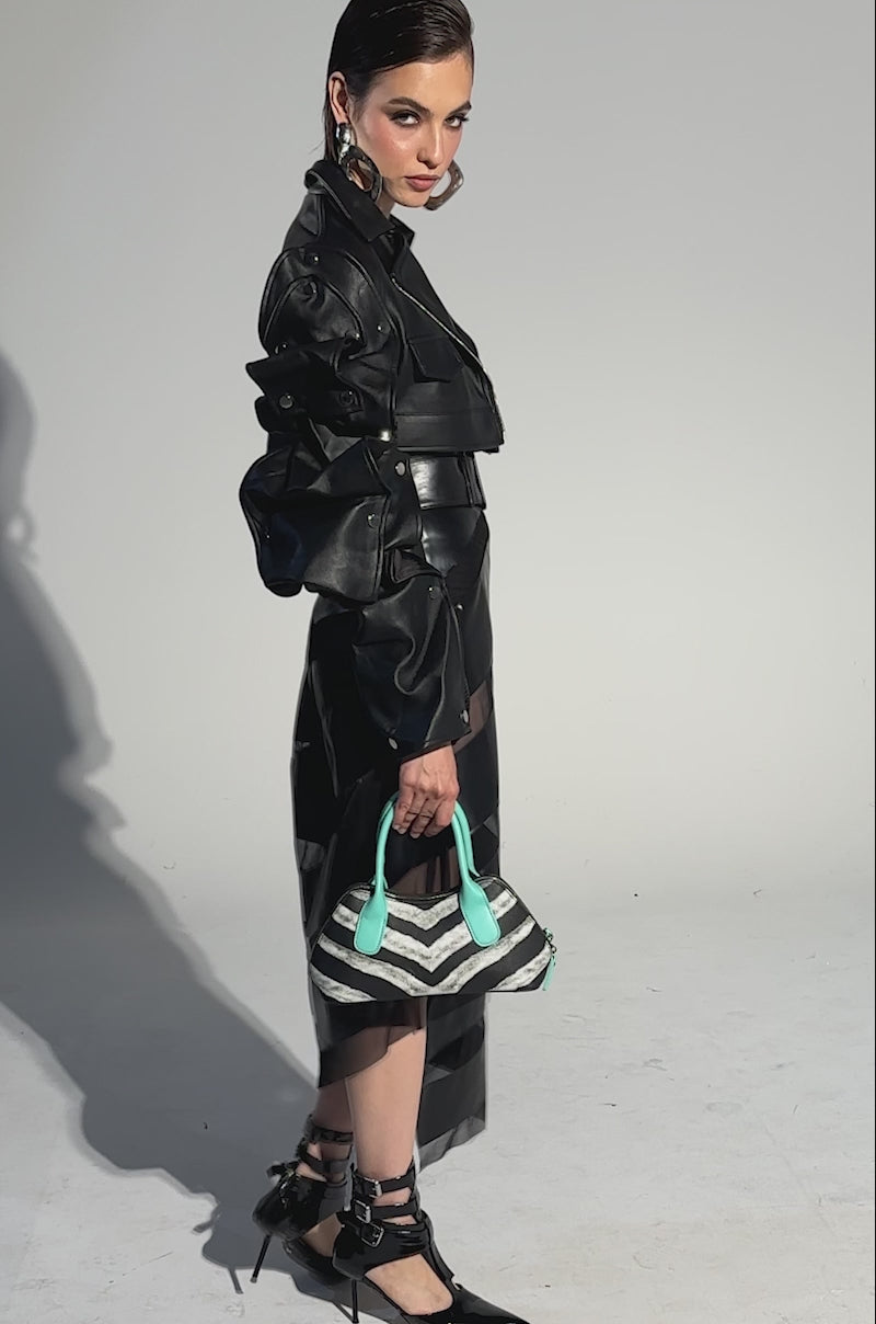 SOMETHING DIFFERENT MESH MIDI SKIRT WITH FAUX LEATHER
