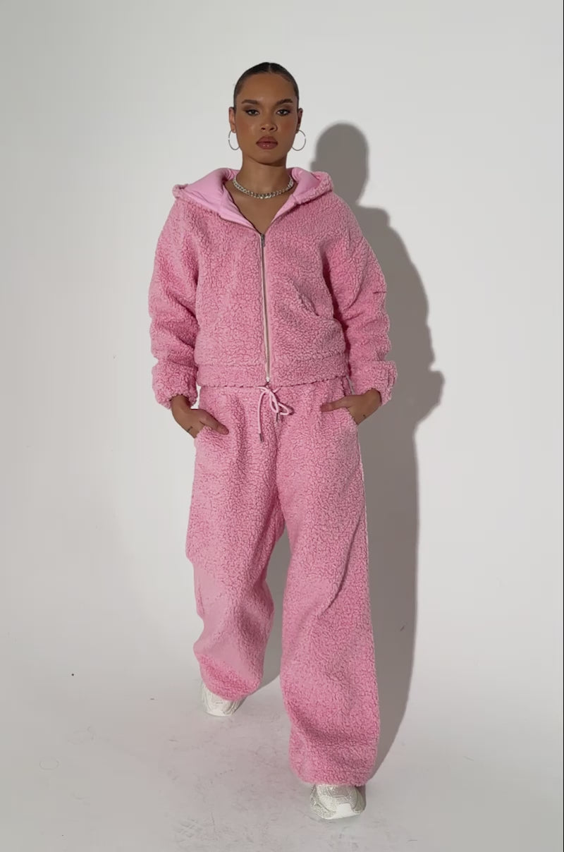 Sour, then sweet, then gone. Level up your loungewear game in The AKIRA Label Sour Candy Sherpa Jogger. These cozy cuties are crafted from a non-stretch sherpa fabrication and feature a high-rise, wide-leg silhouette, an elasticized waistband with tonal drawstrings, spacious side slant pockets, and a soft inner lining. Pair them with the coordinating Sour Candy Sherpa Zip Up Hoodie for a sugary sweet ensemble that’s almost as delectable as you are!