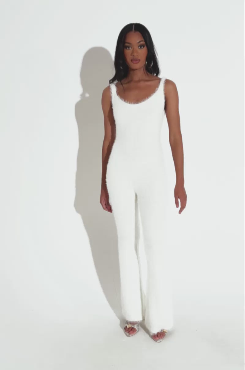 It’s a takeout and movie kinda night with The AKIRA Label Staying In Fuzzy Knit Jumpsuit. This sweet n’ cozy piece is crafted from a deliciously soft, faux mohair fabrication and features a rounded neckline, thick tank straps, a curve-skimming silhouette, and flared pant legs. Complete with an easy, slip-on fit. Pair it with the matching AKIRA Label Staying In Fuzzy Knit Cardigan and furry slides for an elevated loungewear look.