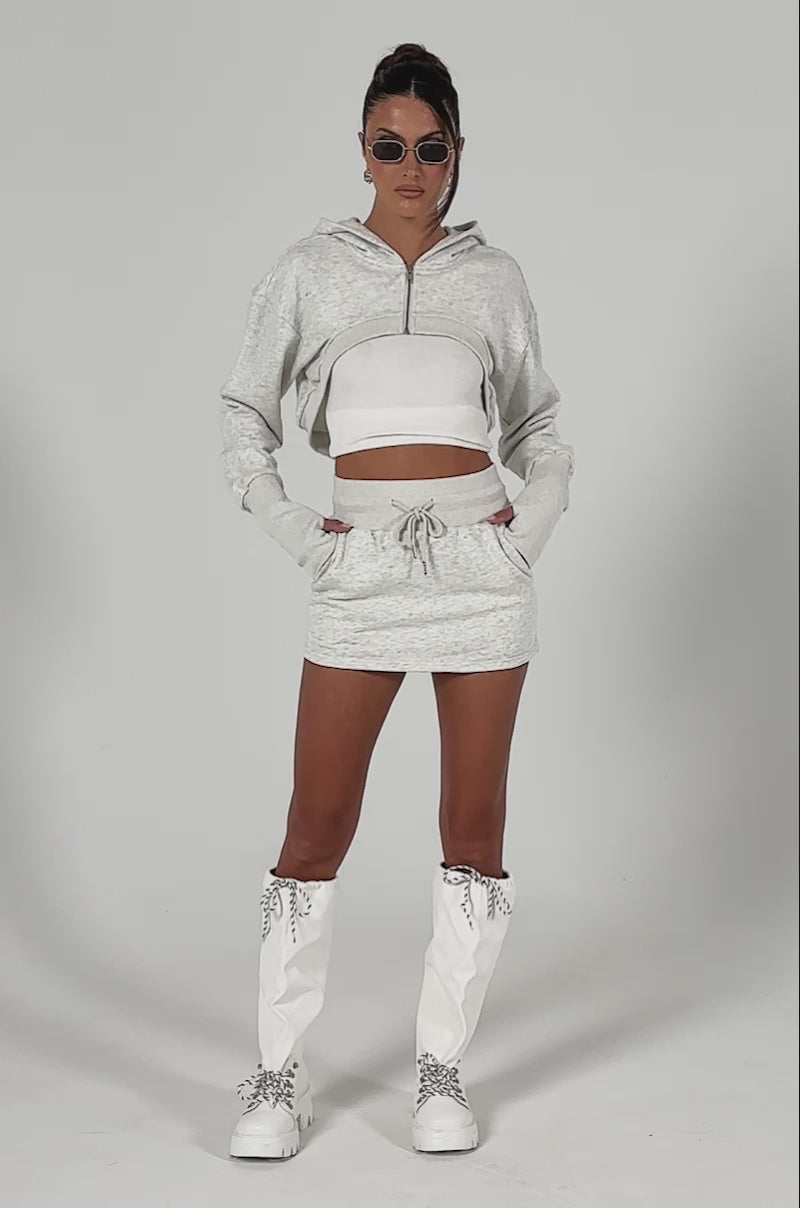 Keep your cards close to your chest with The AKIRA Label Stingy With My Time Mini Skirt. This sweet style is crafted from a stretchy cotton blend base and features a high rise design, a wide shirred elastic waistband with drawstring closures, side slant front pockets, attached inner stretchy shorts, and a mini silhouette. Pair with the coordinating AKIRA Label Stingy With My Time Super Cropped Sweatshirt and platform sneakers for a casual n’ cute look.