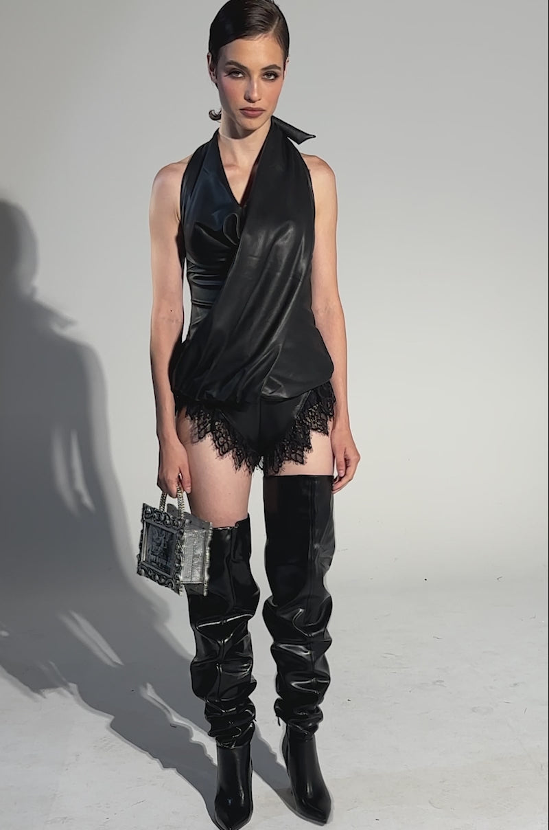Born to rock in The AKIRA Label Syd Faux Leather Lace Trim Short. Crafted from supple faux leather, these sultry bottoms feature a high-rise fit, tonal lace trim on the hemline, a metallic back zipper closure, and a cheeky, curve-hugging silhouette. Perfect for a night out or festival-ready styling, pair effortlessly with crop tops, corsets, or oversized blazers.