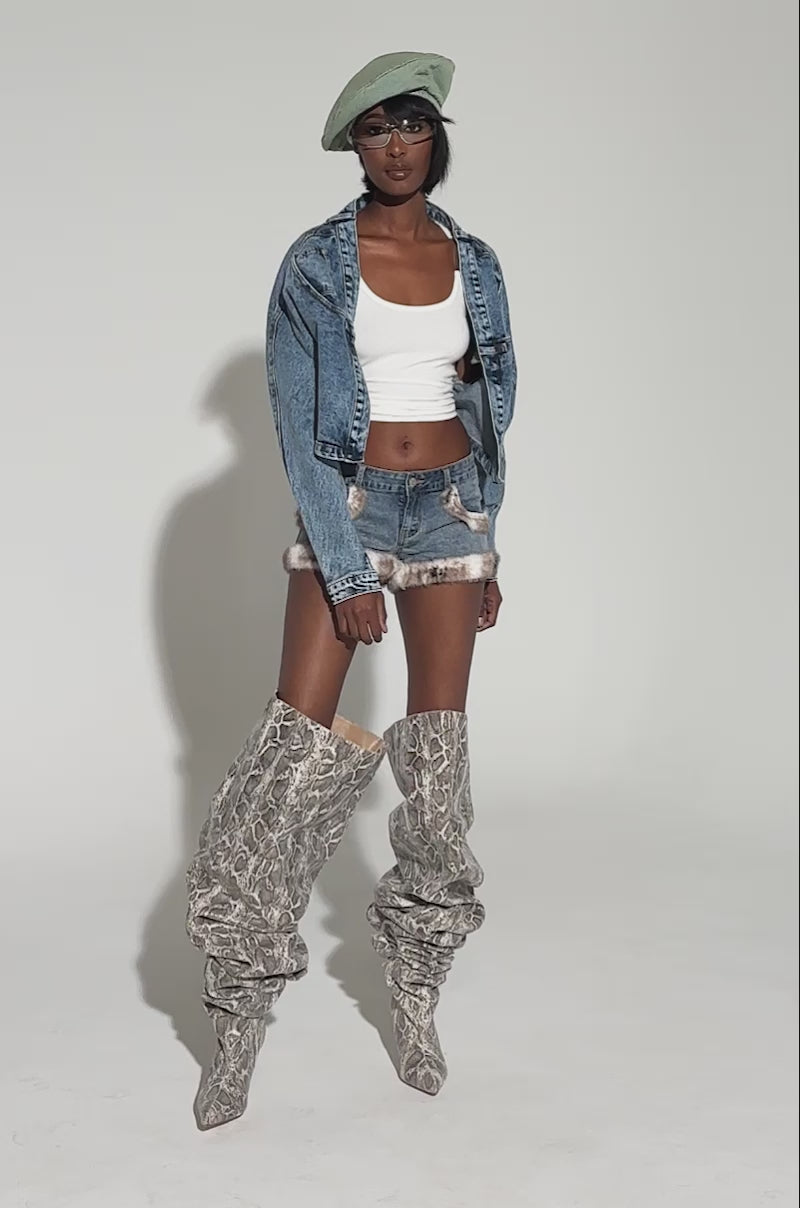 SYMONE DENIM FUR TRIM MINI SHORT