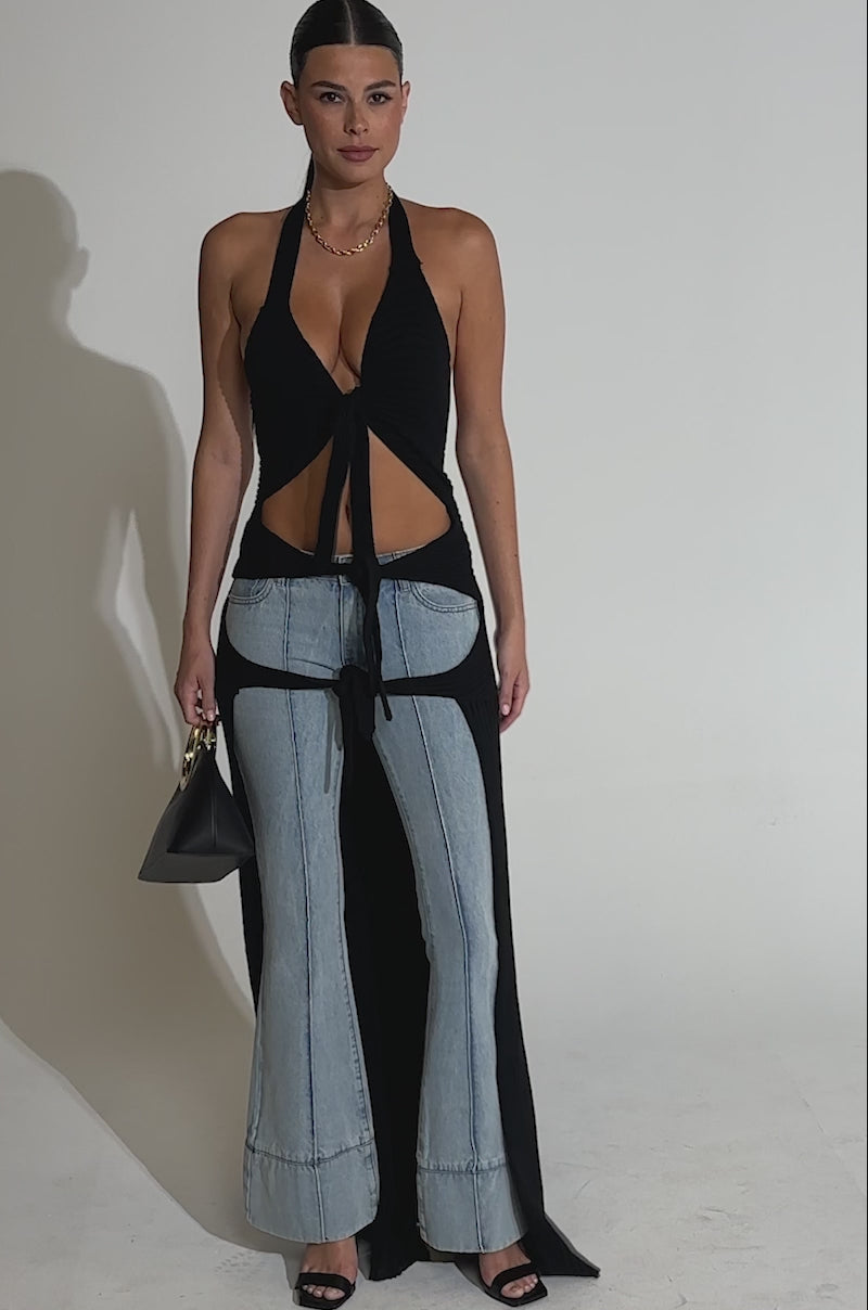 Cut ties with boring clothes and opt for The AKIRA Label Tied To You Tie-Front Sweater. This super-soft, stretchy knit features a curve-skimming, longline silhouette, a plunging halter neckline, and an open-front design with three sets of self-tie closures. Style with your fave denim and a pair of booties for a perfect pre-fall ‘fit.