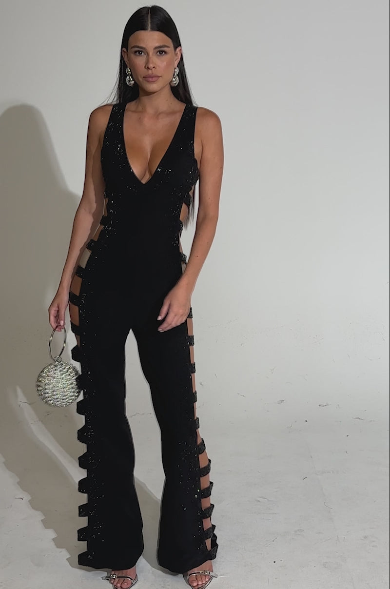 YOUR MAIN ONE CUTOUT JUMPSUIT WITH RHINESTONES
